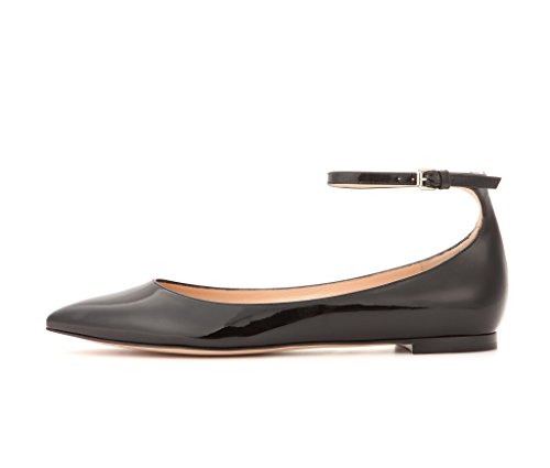 Best Seller! EDEFS Womens Handmade Pointed Toe Ankle Wrap Flats Black Patent Ballet Shoes EU35 Review